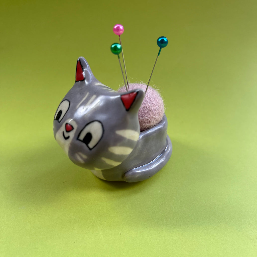 Ceramic Hand Built Cat Pin Cushion