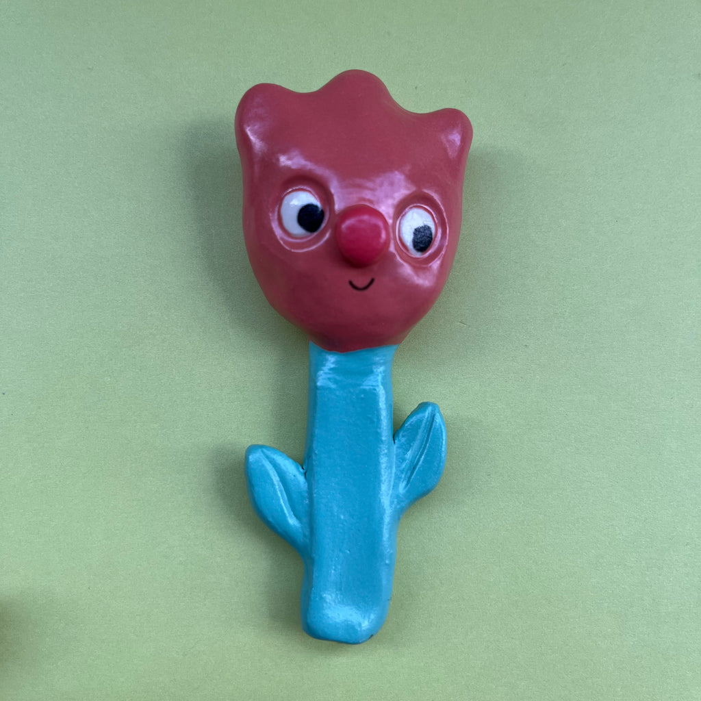 Hand built from stoneware clay and hand painted with underglazes and glaze.