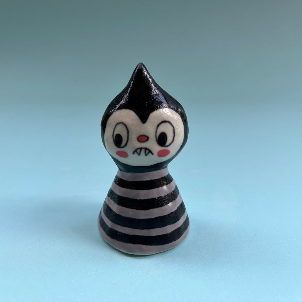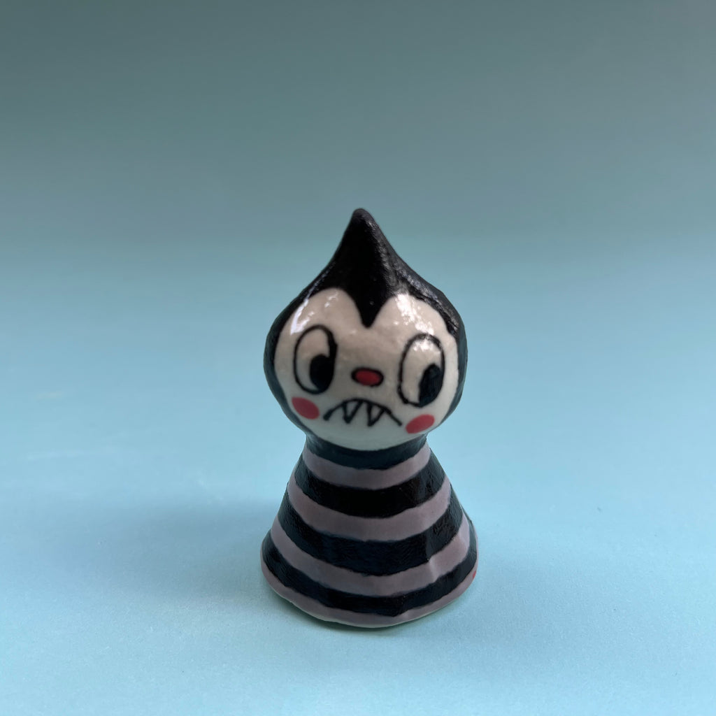 Hand built from stoneware clay and hand painted with underglazes and glaze.