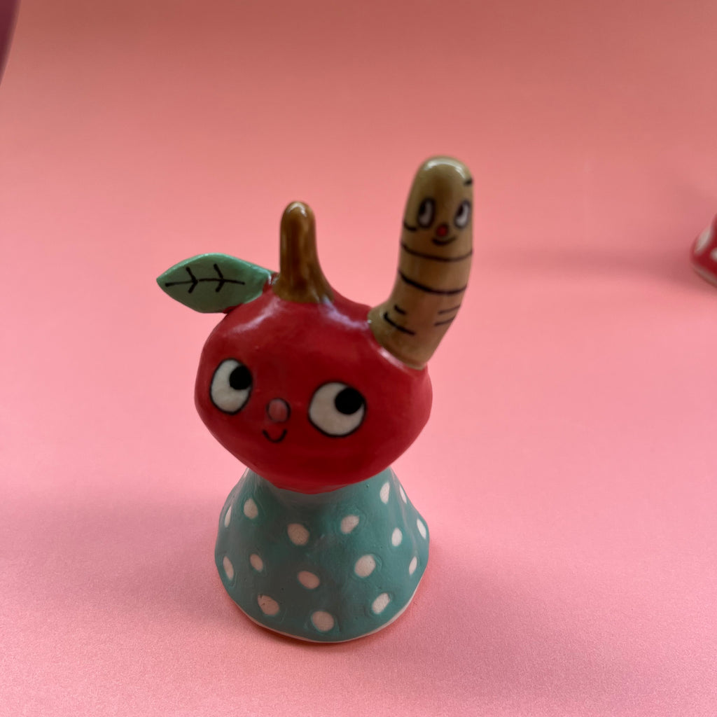 Hand built from stoneware clay and hand painted with underglazes and glaze.