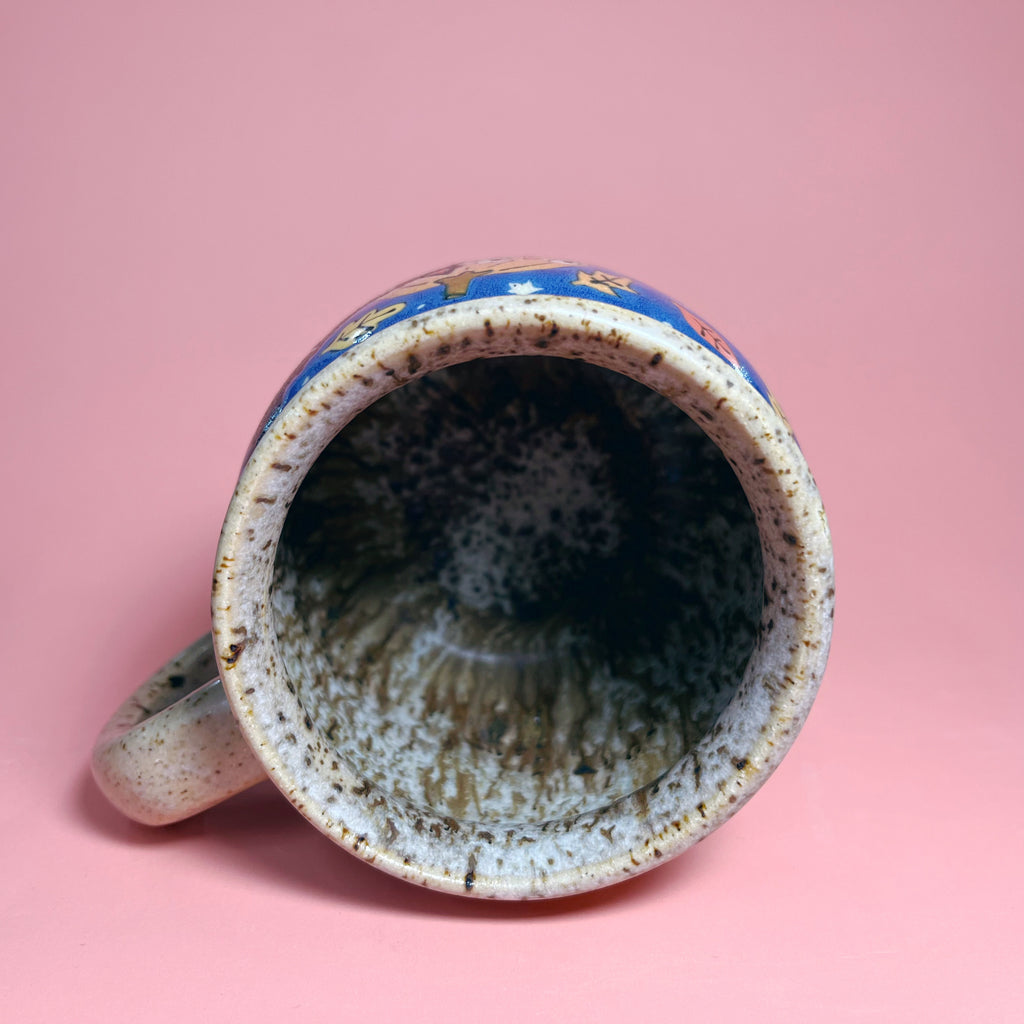 Wheel thrown from stoneware clay and hand painted with underglazes and glaze.