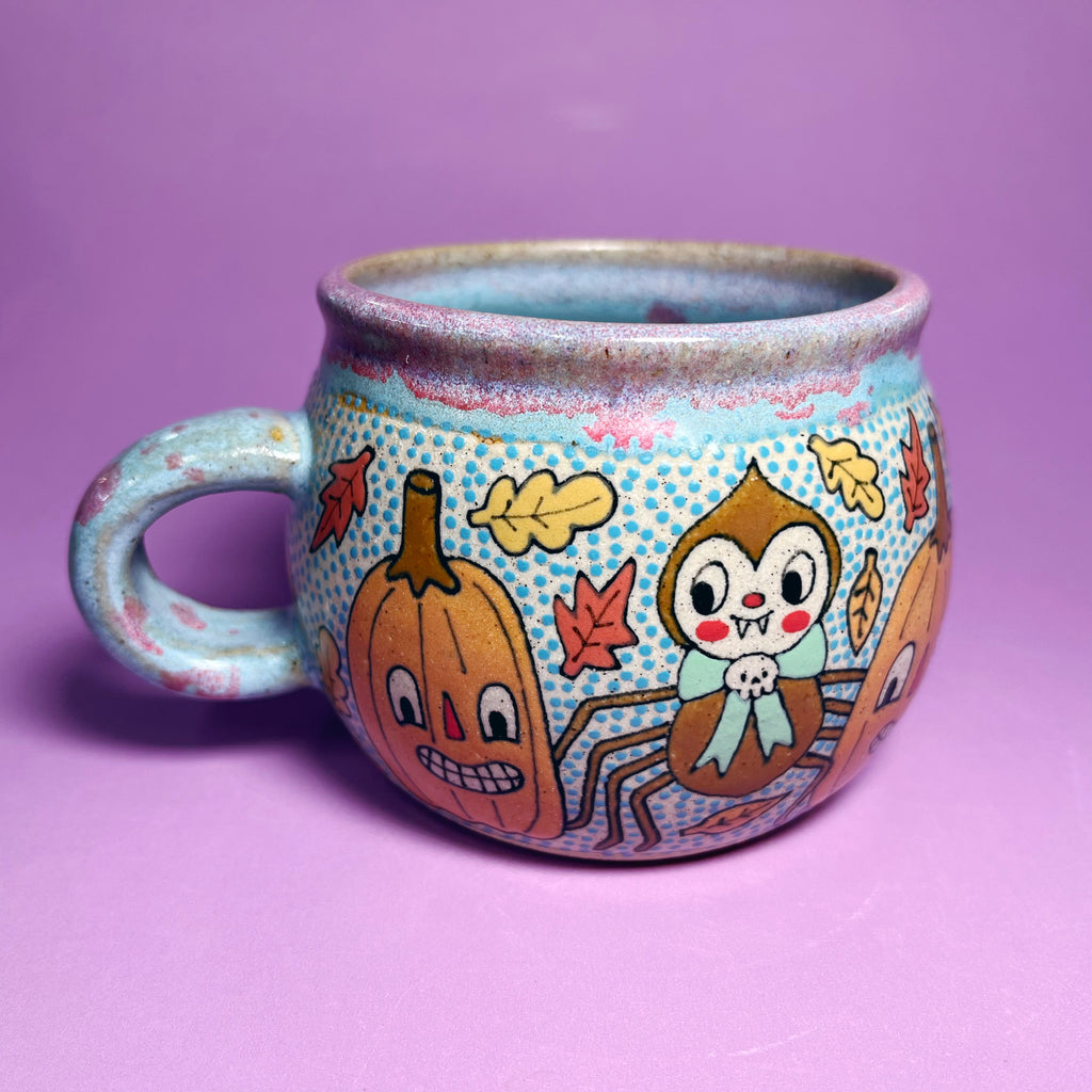 Ceramic Wheel Thrown Halloween Spider Mug 11.5oz