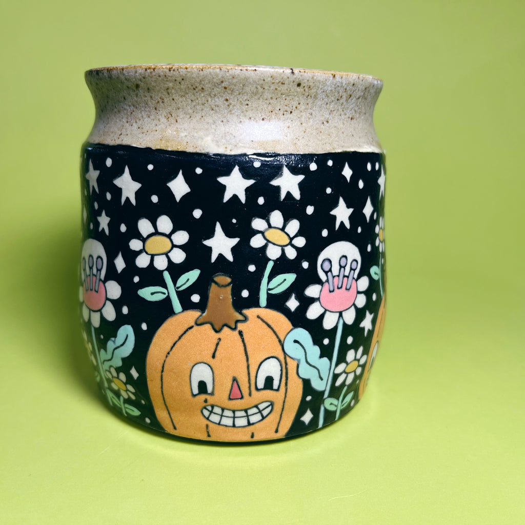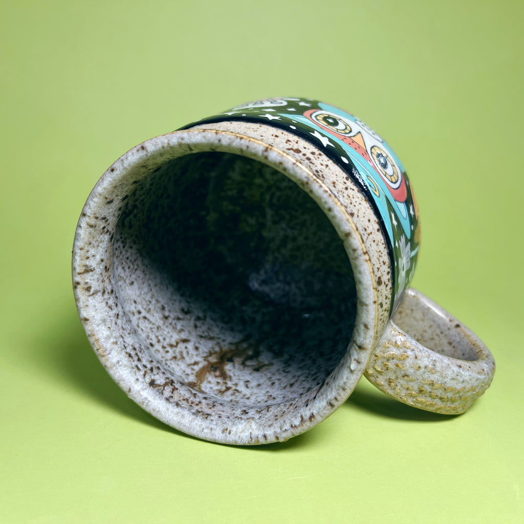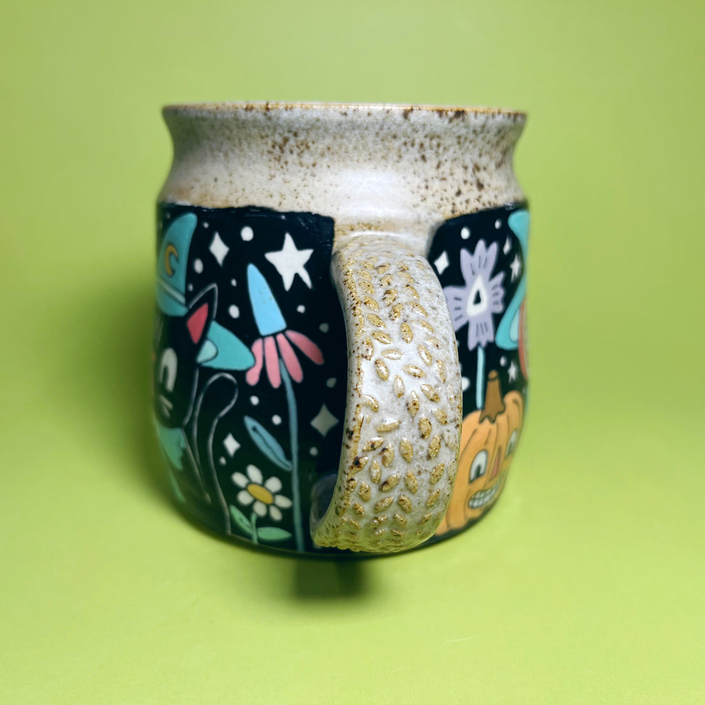 Ceramic Wheel Thrown Halloween Cat Owl Mug 15.5oz
