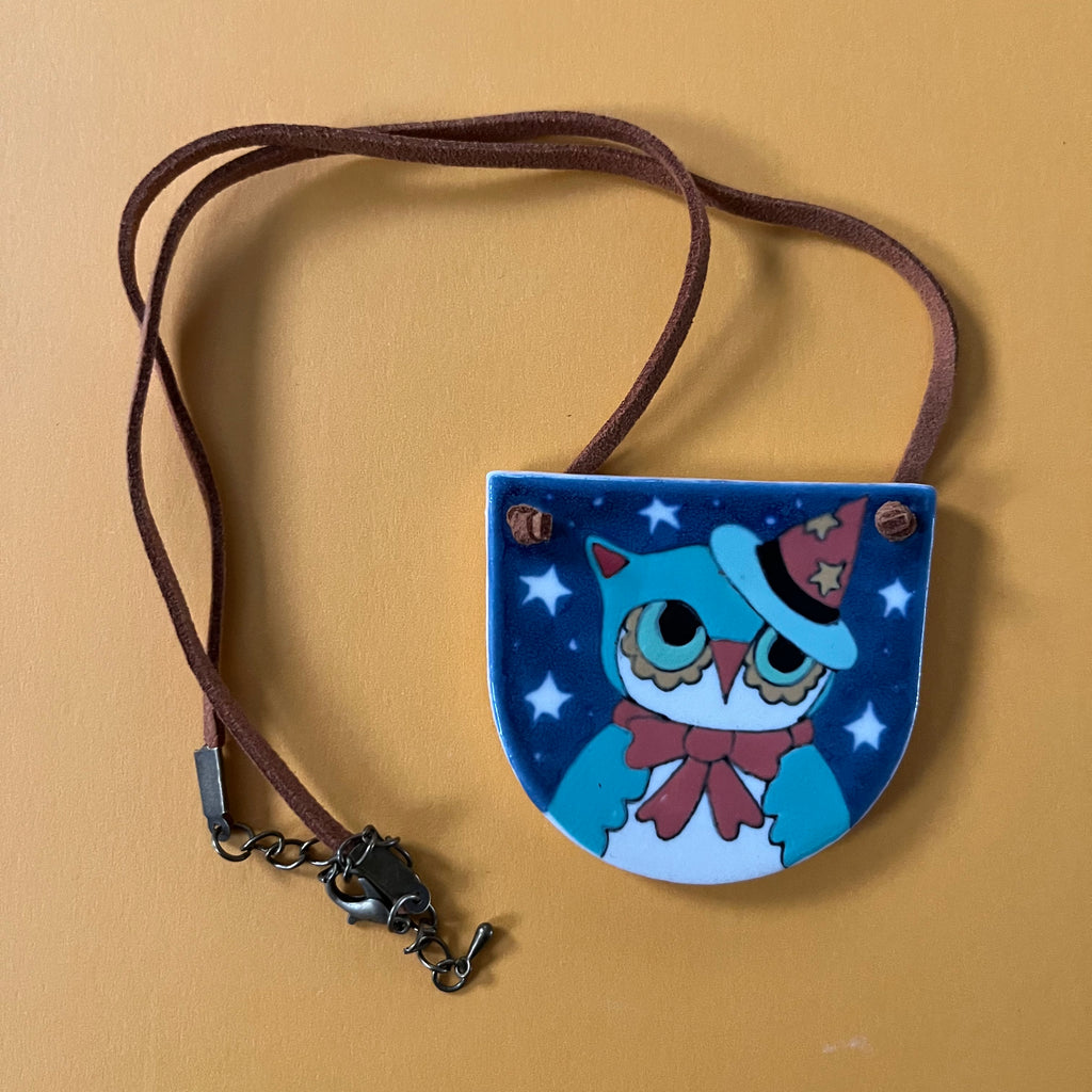 Ceramic Hand Built Necklace Witch Owl