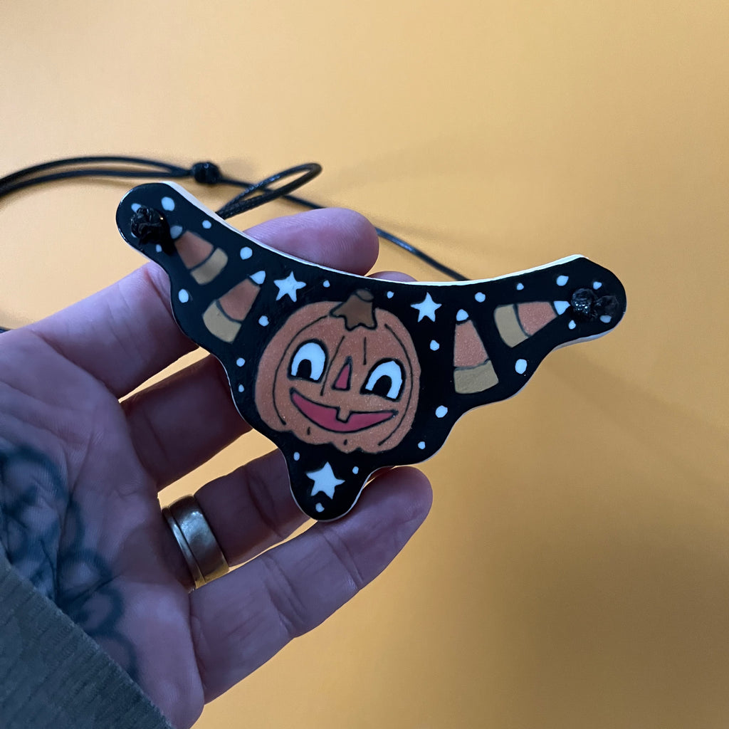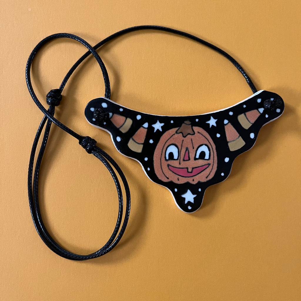Ceramic Hand Built Necklace Pumpkin Candy Corn