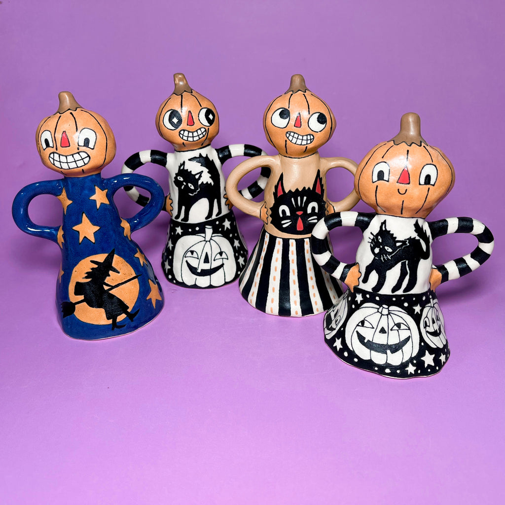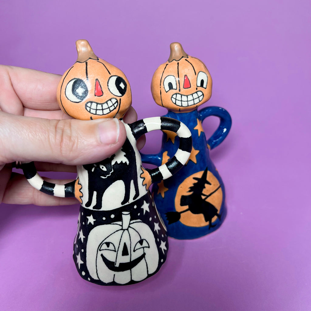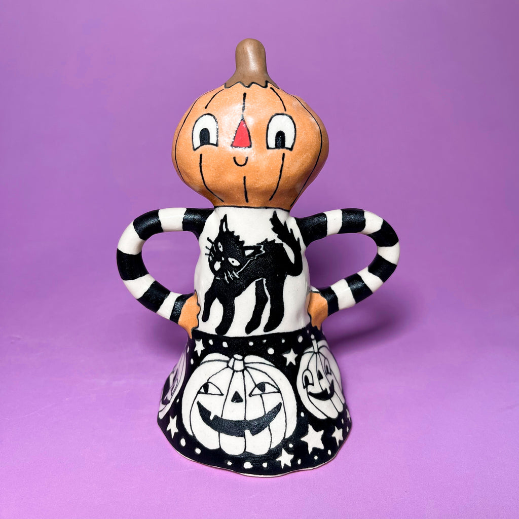 Ceramic Hand Built Large Pumpkin Bell About 5"
