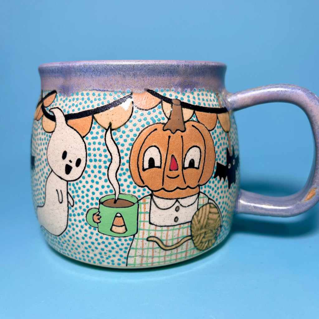 Ceramic Wheel Thrown Halloween Party Mug 16oz