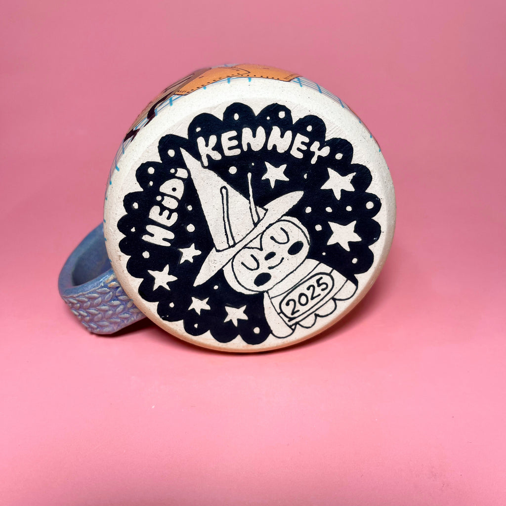 Wheel thrown from stoneware clay and hand painted with underglazes and glaze.