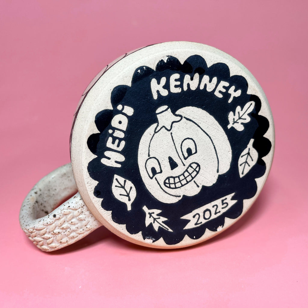 Wheel thrown from stoneware clay and hand painted with underglazes and glaze.