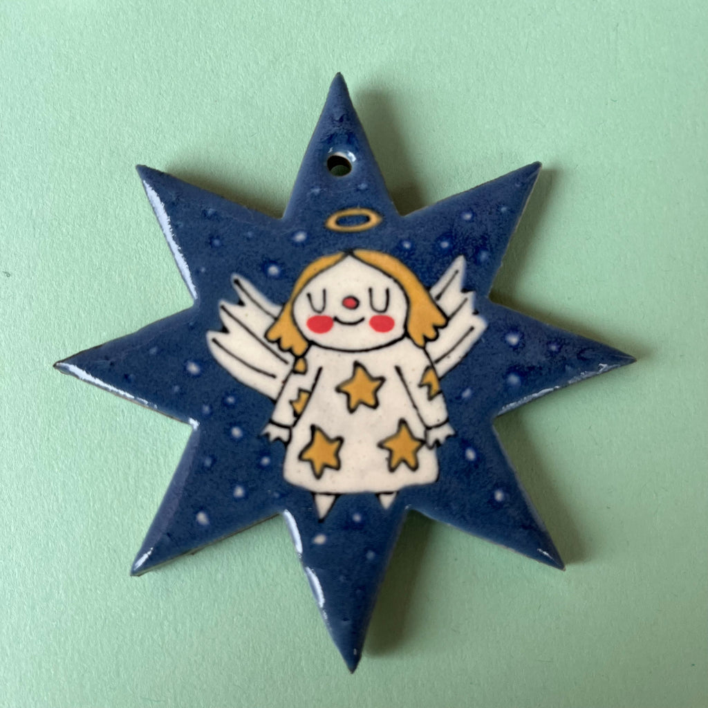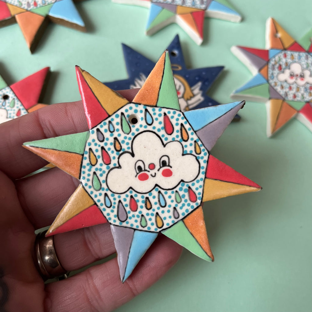 Hand Built from stoneware clay and hand painted with underglazes and glaze.