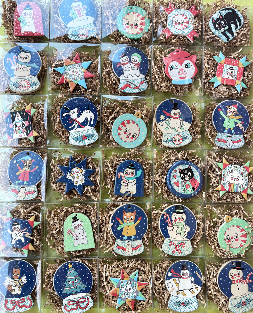Hand Built from stoneware clay and hand painted with underglazes and glaze.
