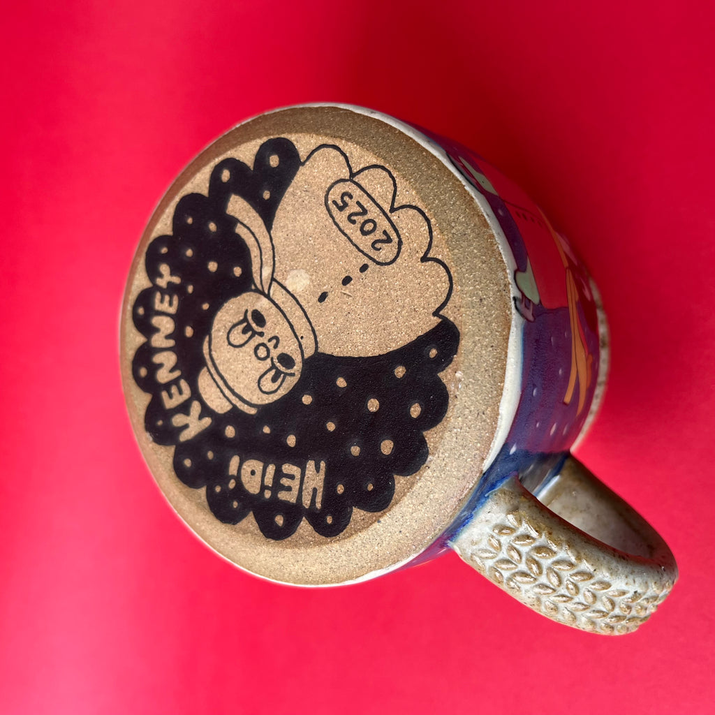 Wheel thrown from stoneware clay and hand painted with underglazes and glaze.