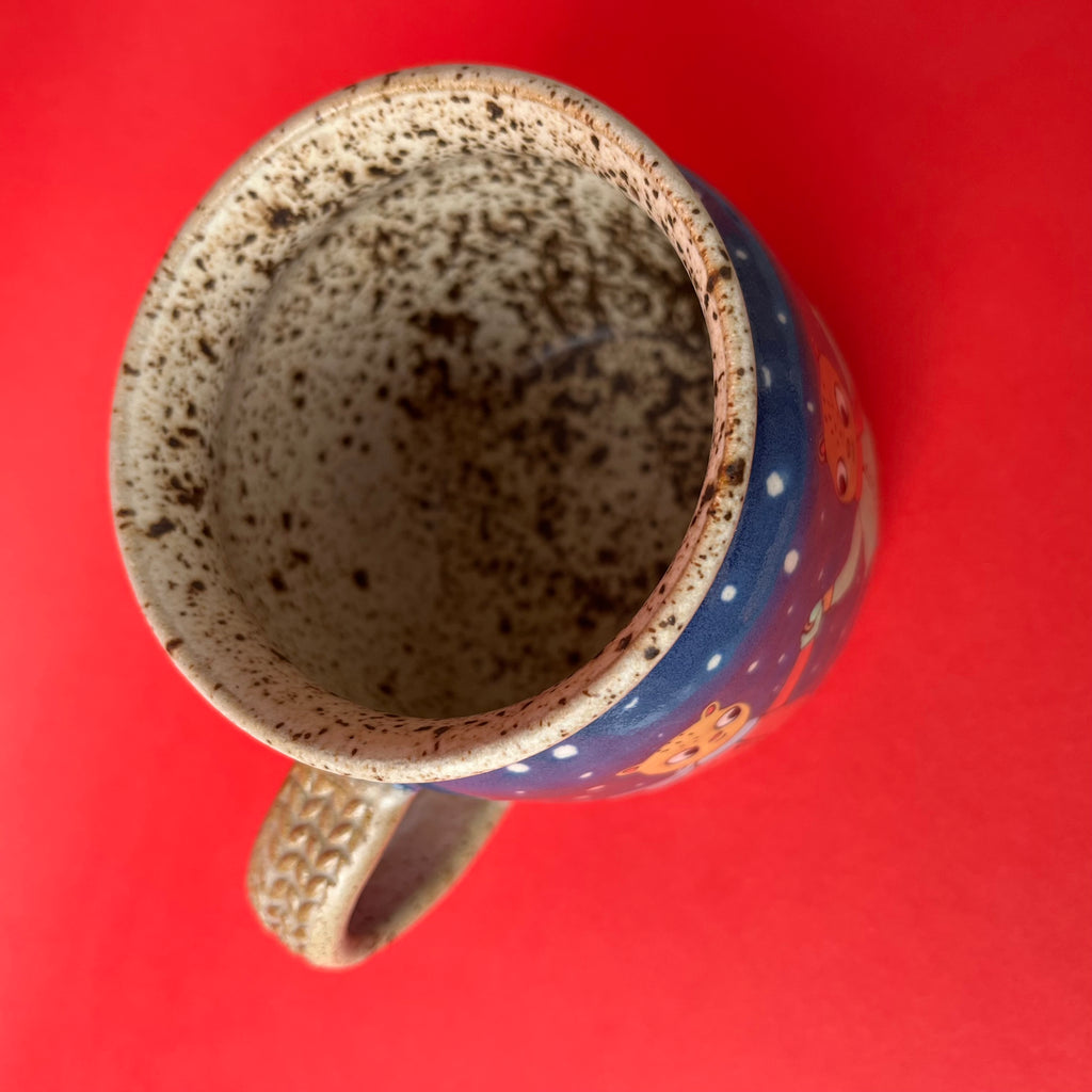 Ceramic Wheel Thrown Ice Skaters Snowman Mug 13.5oz