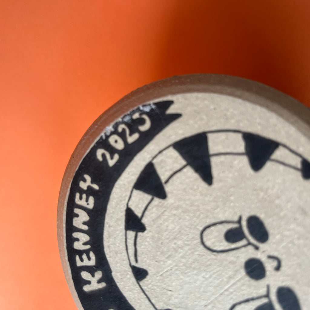 Wheel thrown from stoneware clay and hand painted with underglazes and glaze.