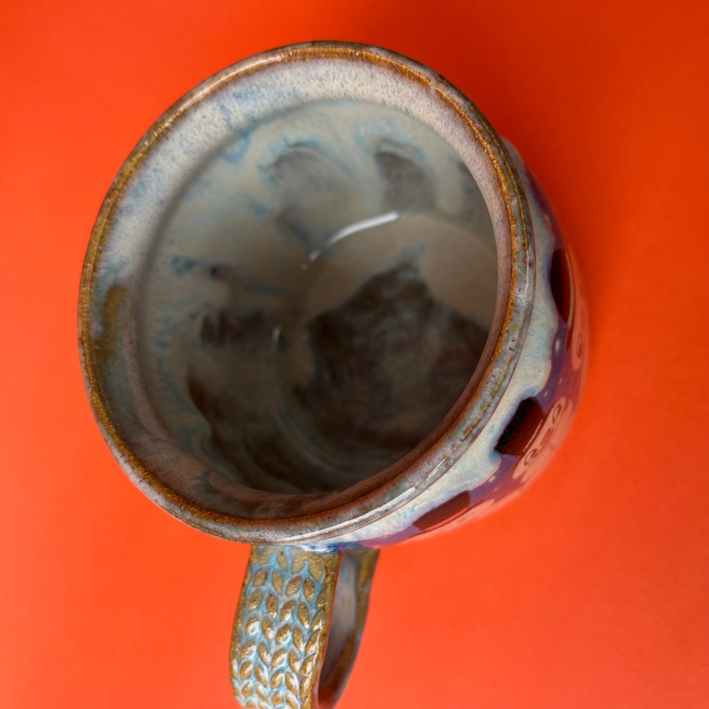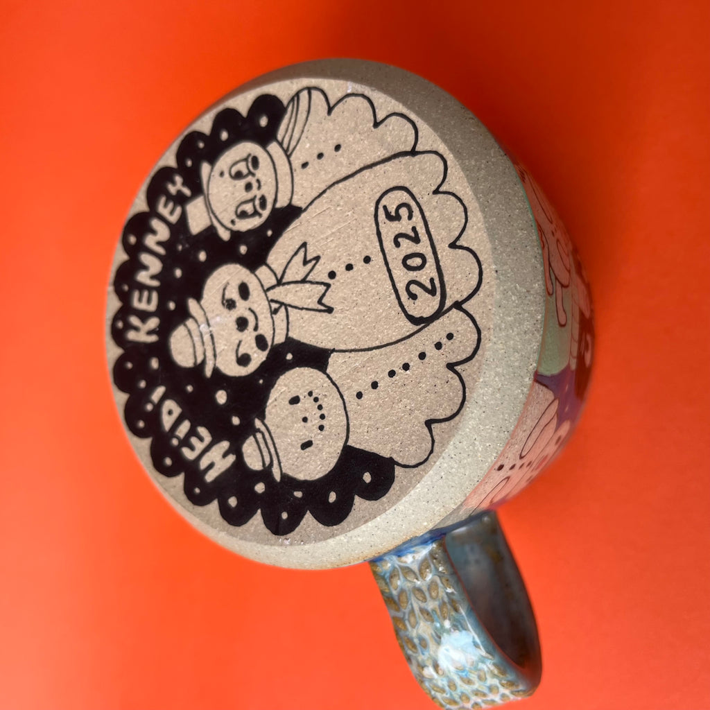 Wheel thrown from stoneware clay and hand painted with underglazes and glaze.