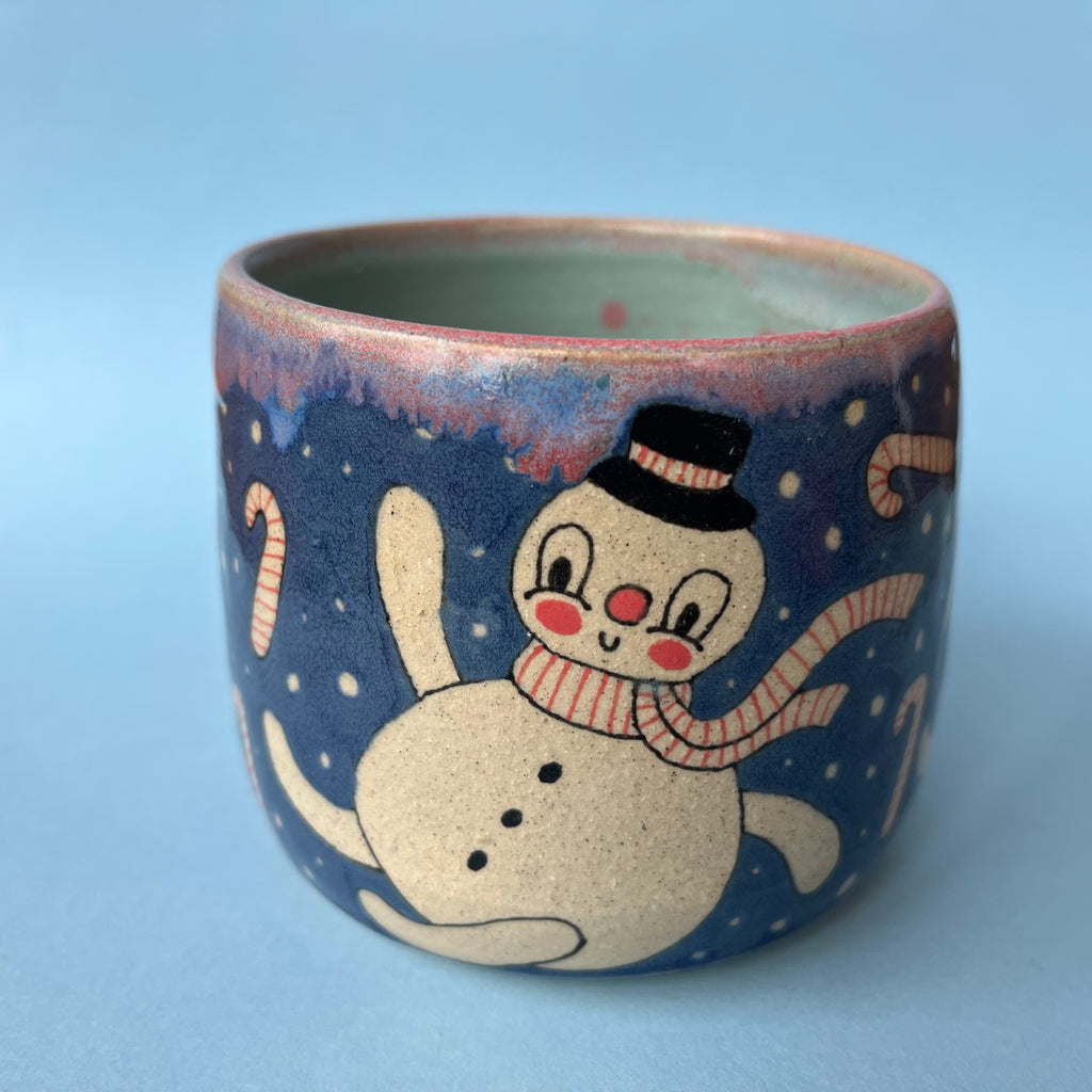 Ceramic Wheel Thrown Snowman Candy Cane Mug 13.5oz