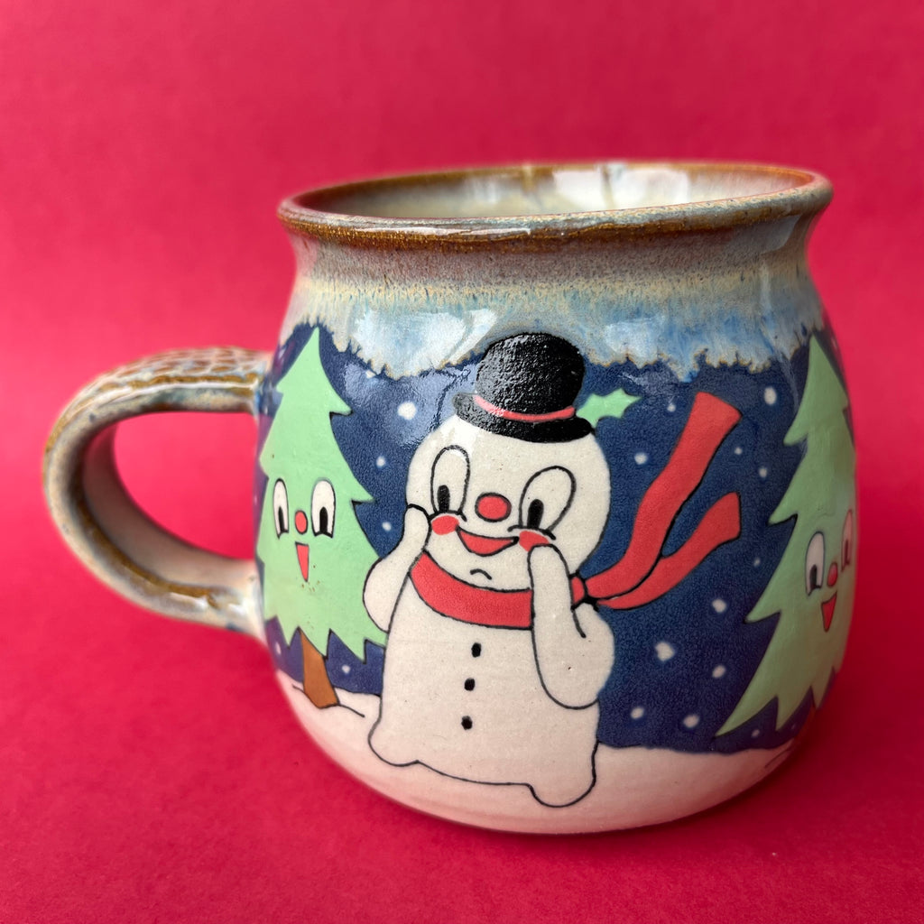 Ceramic Wheel Thrown Snowman Mug 14oz