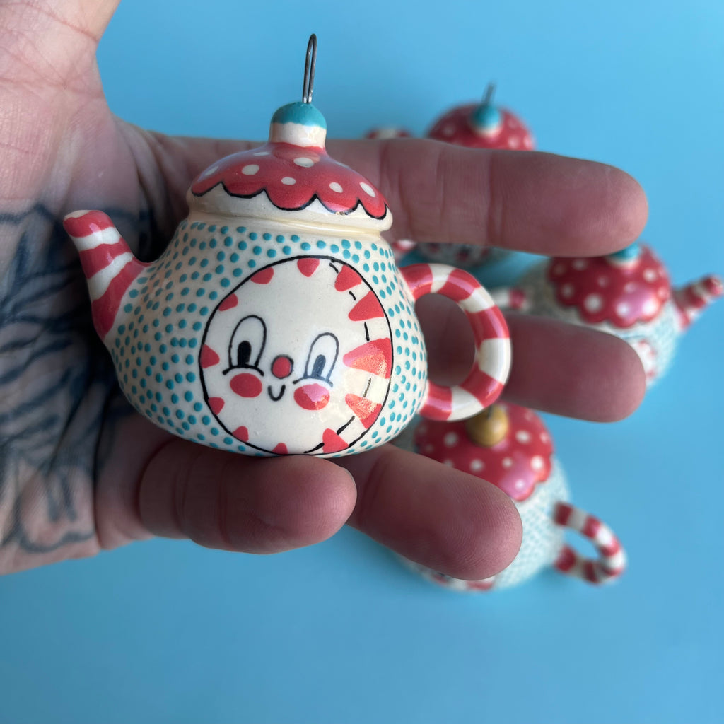 Ceramic Slip Cast Peppermint Teapot Ornament